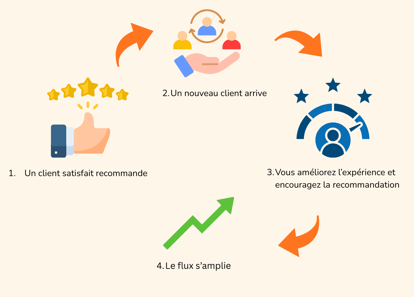 C’est une boucle classique décrite dans de nombreux frameworks de growth loops.